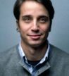 Buildings with a mix of architectural styles line a street, featuring façades in red and beige brick, with various windows and balconies. Two lampposts are visible in the foreground alongside parked cars and a person sitting on a bench. A sign reads 'AVAILABLE' above a staircase on one building.